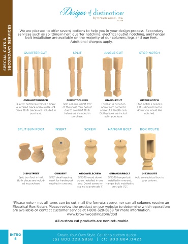 bolt installation are available on the majority of our columns, legs and bun feet.