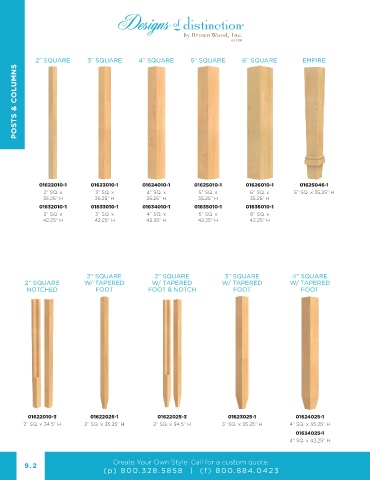 2” SQ. x 34.5” H 2” SQ. x 35.25” H 2” SQ. x 34.5” H 3” SQ. x 35.25” H 4” SQ. x 35.25” H