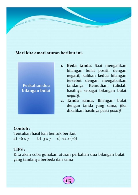 Kita akan coba gunakan aturan perkalian dua bilangan bulat