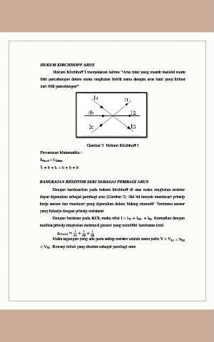 Hukum Kirchhoff I menyatakan bahwa “Arus total yang masuk melalui suatu