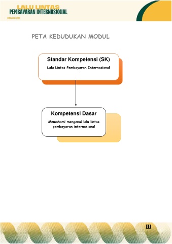 PETA KEDUDUKAN MODUL Standar Kompetensi (SK) Lalu Lintas Pembayaran Internasional Kompetensi Dasar Memahami mengenai lalu lintas pembayaran internasional iii