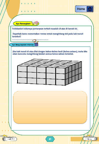 Jika bak mandi di atas diisi dengan kubus-kubus kecil (kubus satuan), maka kita