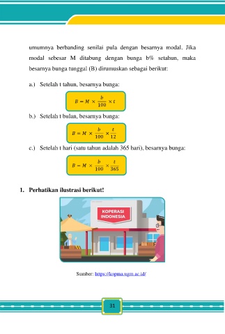 c.) Setelah t hari (satu tahun adalah 365 hari), besarnya bunga: