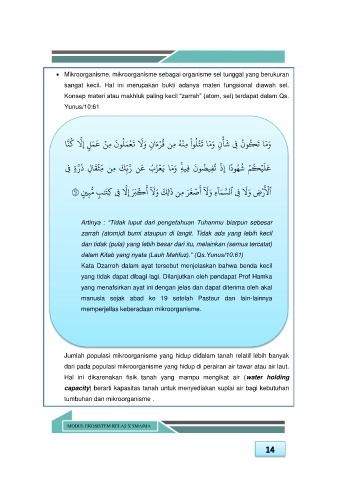 Konsep materi atau makhluk paling kecil “zarrah” (atom, sel) terdapat dalam Qs.