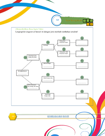 22.3 2a 1h 3d 2 6 (Menumbuhkan Rasa Ingin Tahu) Lengkapilah diagram di bawah ini dengan jenis tumbuh-tumbuhan tersebut! 100 KEANEKARAGAMAN HAYATI