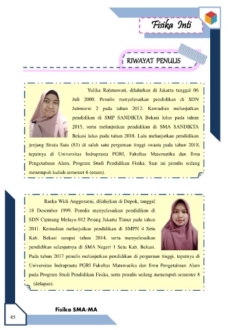 Pengetahuan Alam, Program Studi Pendidikan Fisika. Saat ini penulis sedang