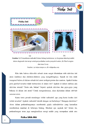 Gambar 1.1 Pemanfaatan radioaktif dalam bidang kedokteran; (a) Kegiatan teknologi nuklir