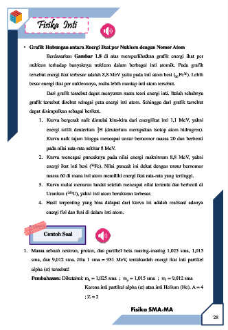 tersebut energi ikat terbesar adalah 8,8 MeV yaitu pada inti atom besi ( Fe ). Lebih