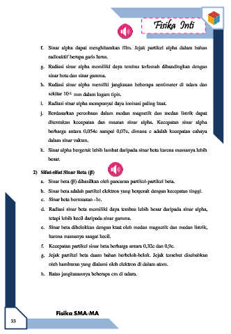 f. Kecepatan partikel sinar beta berharga antara 0,32c dan 0,9c.