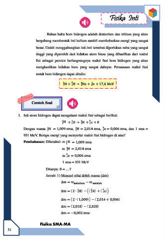 1. Inti atom hidrogen dapat mengalami reaksi fusi sebagai berikut: