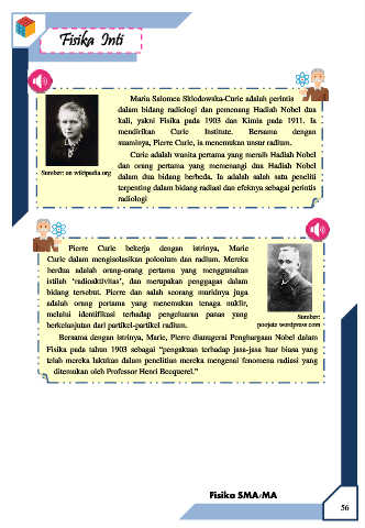 kali, yakni Fisika pada 1903 dan Kimia pada 1911. Ia