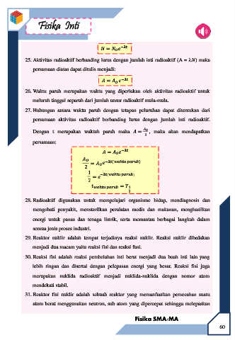 26. Waktu paruh merupakan waktu yang diperlukan oleh aktivitas radioaktif untuk