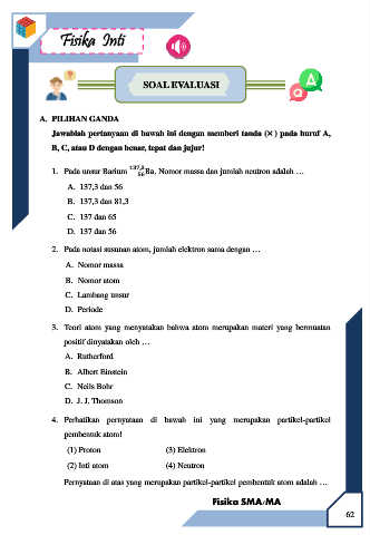 1. Pada unsur Barium 137,3 Ba. Nomor massa dan jumlah neutron adalah …