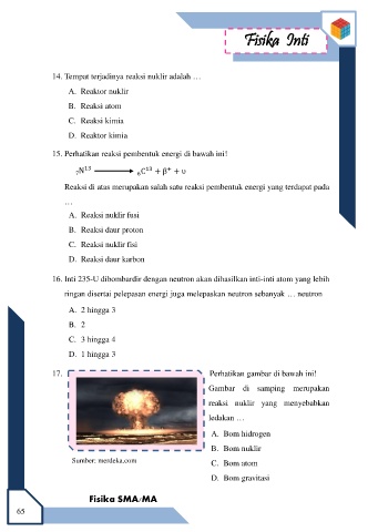 16. Inti 235-U dibombardir dengan neutron akan dihasilkan inti-inti atom yang lebih