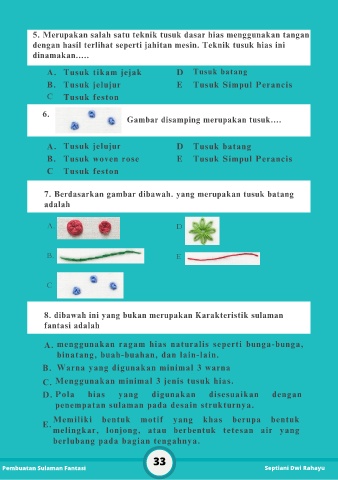 8. dibawah ini yang bukan merupakan Karakteristik sulaman