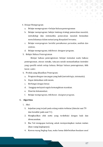 c. Belajar memprogram: bersifat pemahaman persoalan, analisis dan
