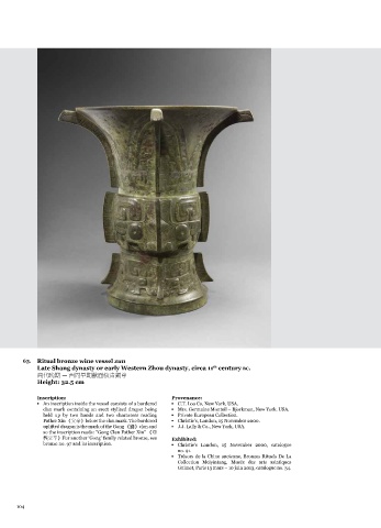 bronze no. 97 and its inscription. ▪ Christie’s London, 15 November 2000, catalogue 版, 上冊, 第84頁, 下冊, 第689頁, A.413號, 銘文: 上冊, Collection, London 2009, p.138 – 139, no. 63.