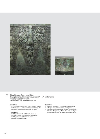Collection Meiyintang, Musée des arts asiatiques ▪ Yu Xingwu, Shang Zhou Jinwen Luyi, 1957, no. 49. 于 sales), Shanghai 2007, no. 43. 劉雨 & 汪濤《流散歐美
