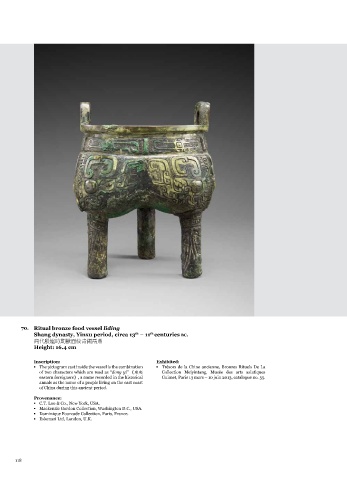 of China during this ancient period. no. R.181. 陳夢家《殷周青銅器分類圖錄》東京 1977年 Collection, London 2009, p. 154 – 155, no. 70.