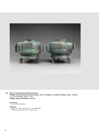 105. Pair of ritual bronze food vessels gui 106. Pair of ritual bronze food vessels gui