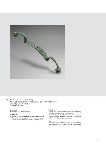 134. Ritual bronze wine vessel zhi 135. Bronze piece of a bow pang