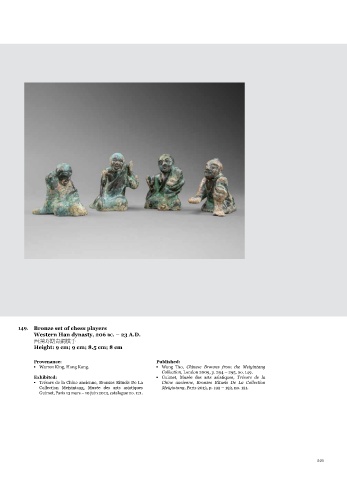 148. Bronze oil lamp in the shape of an ox 149. Bronze set of chess players