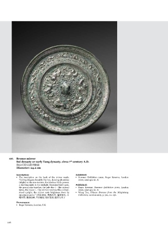▪ The inscription on the back of the mirror reads: ▪ Summer Exhibition 2000, Roger Keverne, London ▪ Warren King, Hong Kong. ▪ Wang Tao, Chinese Bronzes from the Meiyintang
