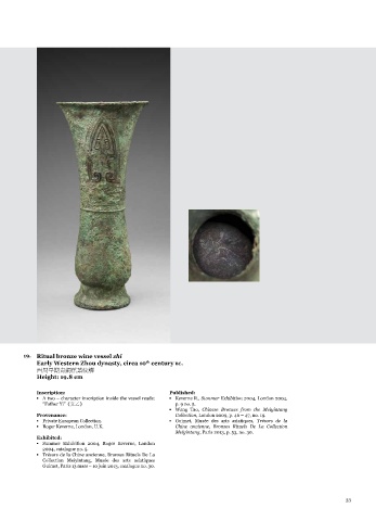 ▪ Wang Tao, Chinese Bronzes from the Meiyintang ▪ A two – character inscription inside the vessel reads: ▪ Keverne R., Summer Exhibition 2004, London 2004,