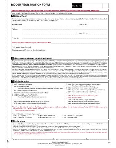 made by calling at +852 2978 5371. Your bidder registration will not be considered complete until we receive payment of the deposit in full and cleared funds.