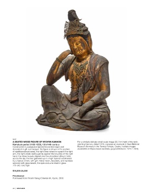 A SEATED WOOD FIGURE OF NYOIRIN KANNON For a similarly delicate small-scale image (32.7cm high) of the wish-
