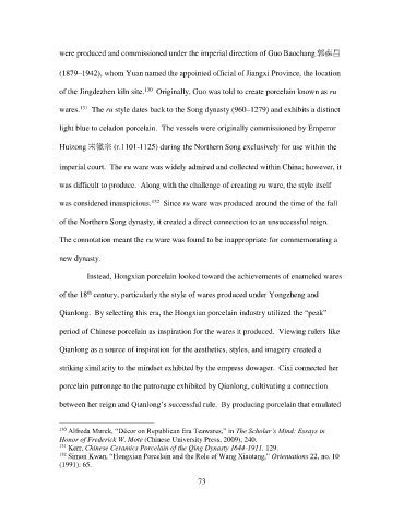 of the Jingdezhen kiln site. 130 Originally, Guo was told to create porcelain known as ru