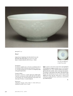 Inscribed in standard script on the base in underglaze blue in HE COLOR OF THIS FINELY POTTED BOWL was inspired by