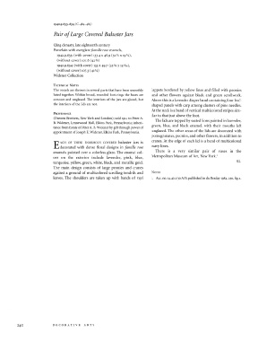 ACH OF THESE ENORMOUS COVERED baluster jars is cranes. At the edge of each lid is a band of multicolored