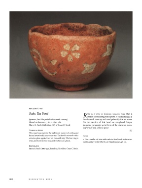 colorless glaze applied over an iron oxide slip. The foot-ring is i. For a similar red iron oxide raku tea bowl made by the nine-