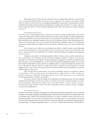 from iron oxide were reserved for court use during the Qing dynasty. A great variety of yellow glazes was devel-