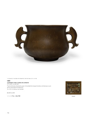 The bombé body is fanked by a pair of simplifed fsh-shaped handles, and the base is cast