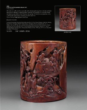 2009, p. 55, no. 64. See, also, a related well-carved brush pot with similar scenes of a literati