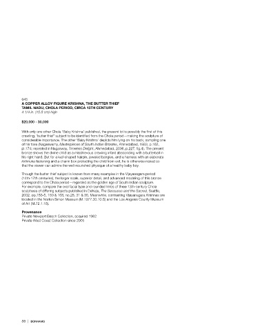 With only one other Chola ‘Baby Krishna’ published, the present lot is possibly the first of this