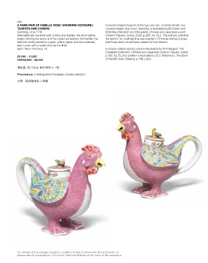 A RARE PAIR OF FAMILLE ROSE ‘STANDING COCKEREL’ Cockerel-shaped teapots of this type are rare. A similar famille rose