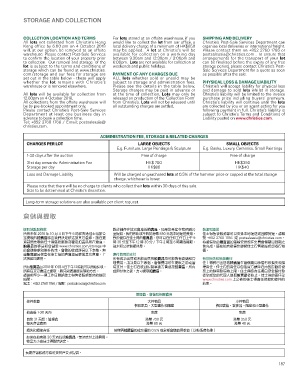 所有未在 2018 年 10 月 4 日下午 6 時從香港佳士得辦公 室提取,我們將收取不低於港幣 850 元的本地運送費用。 佳士得售後服務部可以安排本地運送或國際貨運。請聯