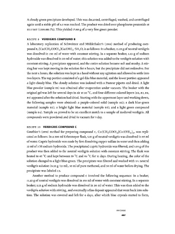 verdigris solution with stirring, and eventually a fine deposit appeared that went back into solu