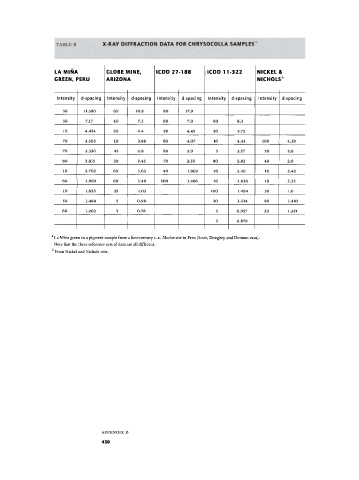 TABLE 8 X-RAY DIFFRACTION DATA FOR CHRYSOCOLLA SAMPLES 3