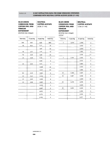 TABLE 10 X-RAY DIFFRACTION DATA FOR S O M E VERDIGRIS SYNTHESES