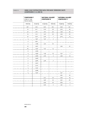 TABLE 11 SOME X-RAY DIFFRACTION DATA FOR BASIC VERDIGRIS SALTS
