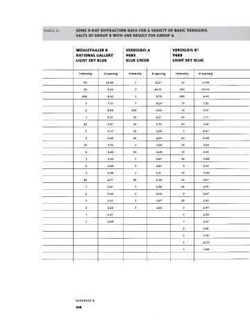 TABLE 13 SOME X-RAY DIFFRACTION DATA FOR A VARIETY OF BASIC VERDIGRIS