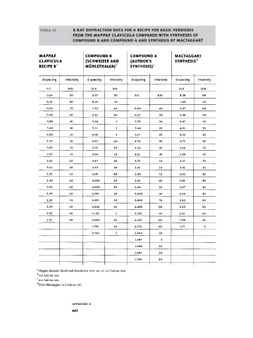 TABLE 16 X-RAY DIFFRACTION DATA FOR A RECIPE FOR BASIC VERDIGRIS