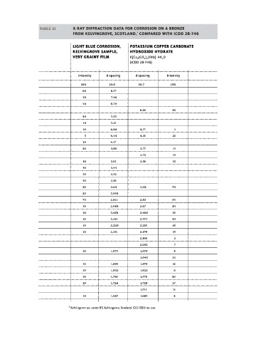 TABLE 21 X - R A Y D I F F R A C T I O N DAT A F O R C O R R O S I O N O N A B R O N Z E
