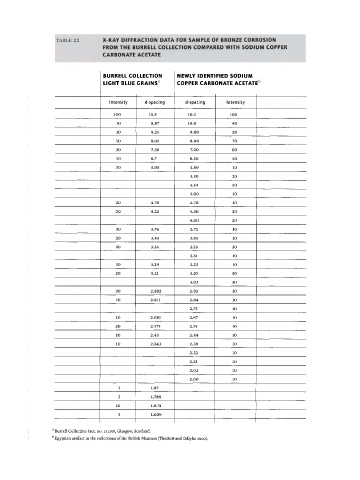 TABLE 22 X-RAY DIFFRACTION DATA FOR SAMPLE OF BRONZE CORROSION
