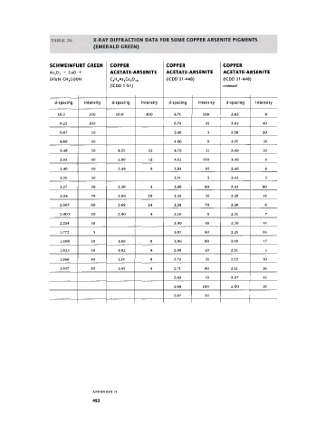TABLE 26 X-RAY DIFFRACTION DATA FOR SOME COPPER ARSENITE PIGMENTS