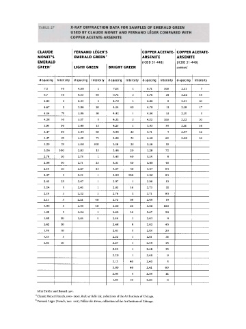 TABLE 27 X-RAY DIFFRACTION DATA FOR SAMPLES OF EMERALD GREEN